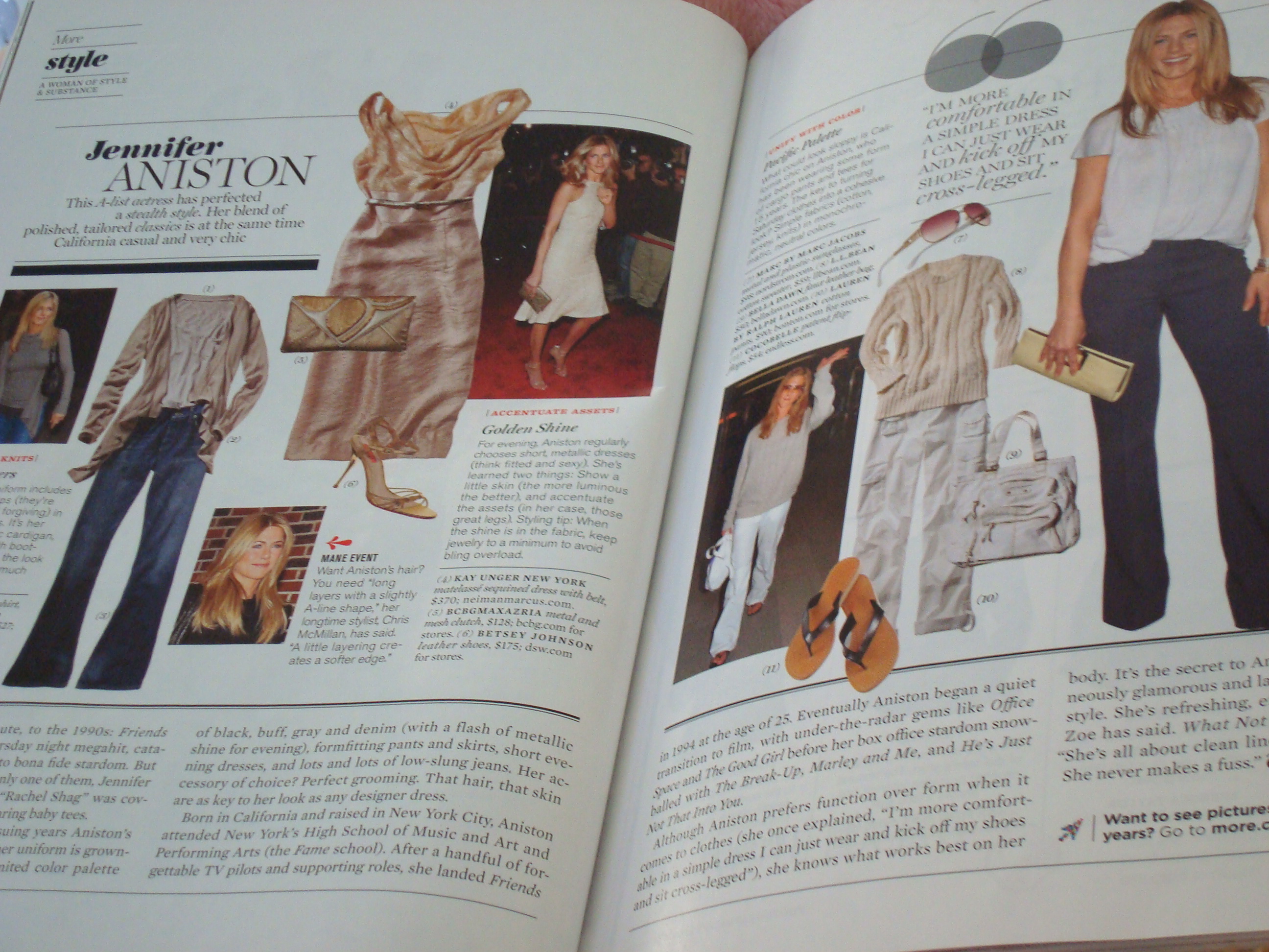 Walking home I remembered that I met Jennifer right as her career was taking off – I have been on Team Aniston since and have always admired her choices in clothing and makeup. She’s on my top ten list of the most fashionable women in the world. I enjoyed reading the article and looking at the pictures for inspiration.